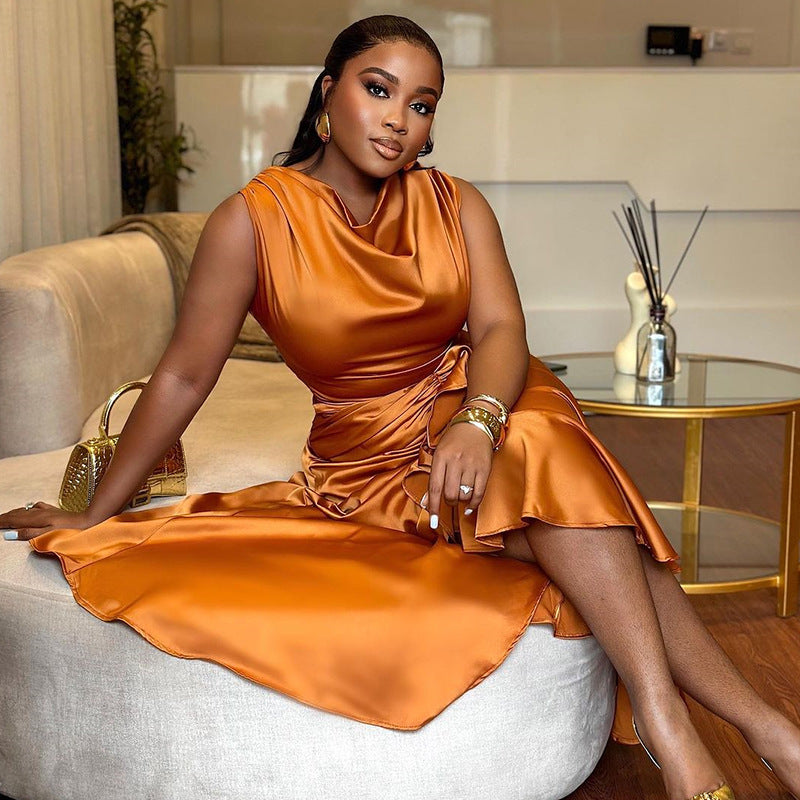 Sleeveless Slim Fit Ruffled Mid-length Irregular Dress